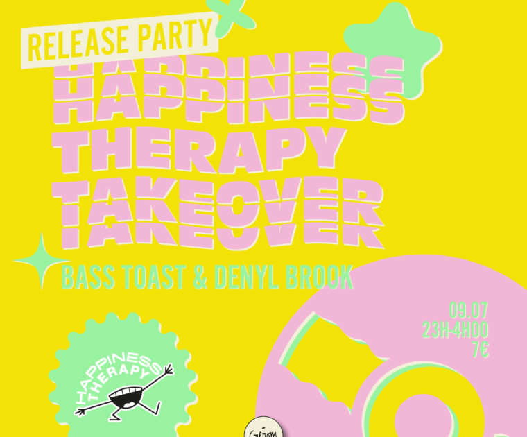 Happiness Therapy est un label et collectif français qui produit des événements de musique électronique et accompagne de jeunes artistes dans leur démarche créative. Association Loi 1901, la structure créée en 2014 milite pour une fête libre et safe, où l’humain est à la fois spectateur et acteur de l’instant. Notre fil rouge ? Le bonheur !