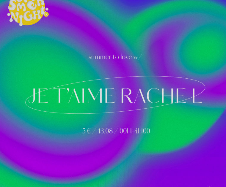 Je t’aime Rache L est un DJ originaire de la Drôme à Romans/Isère. Créateur du collectif ROMANESQUE et également membre du duo Club Halieutique il a choisit de proposer un allias en solitaire afin de pouvoir jouer son univers personnel. Éternel pacifiste, il cherche de manière continuelle à vous proposer ses disques laissant place au rêve, à l’amour et à la joie